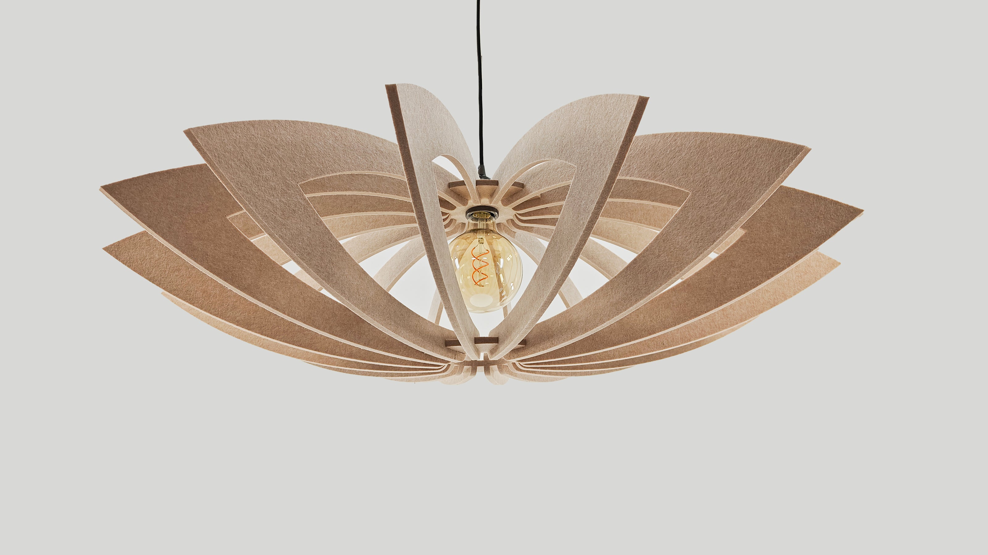 Ontdek de schoonheid van de Fleur 100, een vilten lamp die design en duurzaamheid perfect combineert. Met een indrukwekkende diameter van 100 cm is deze lamp een echte blikvanger in elke ruimte. De Fleur 100 ontleent zijn naam en vorm aan de delicate uitstraling van een bloem, wat zorgt voor een sierlijke en natuurlijke touch in je interieur.